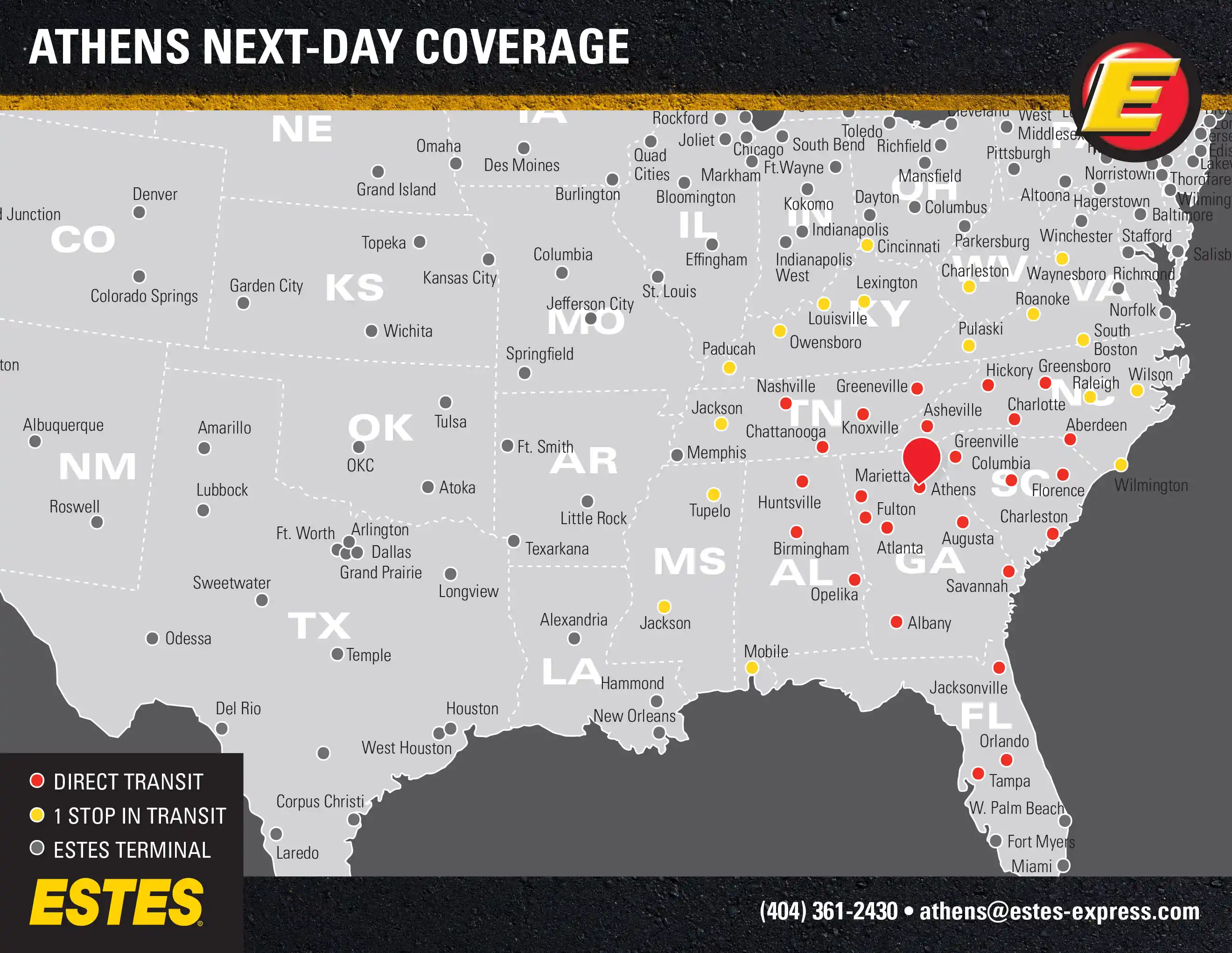 Contact us today for a rate quote or information, and we’ll show you why Athens trusts its freight shipping to Estes.